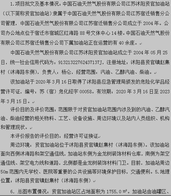 中国石油天然气股份有限公司江苏沭阳贤官加油站 |