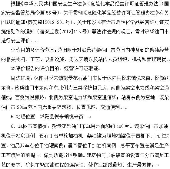 沭阳县悦来镇彭景花石油门市安全现状评价 |