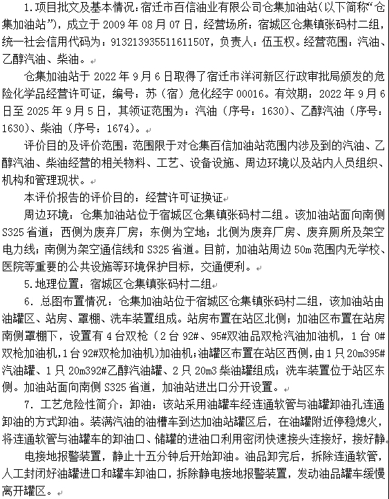 宿迁市百信油业有限公司仓集加油站安全现状评价 |