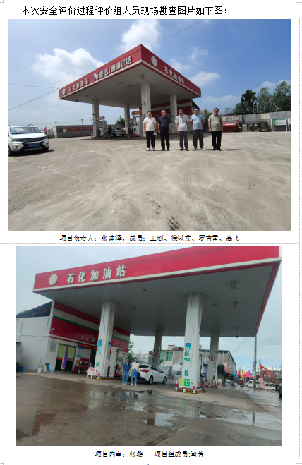 1.项目批文及基本情况:宿迁市侍岭诺言加油站管理有限公司,成立于2025年7月15日,统一社会信用代码为:91321311MAEPY348XM,营业场所:江苏省宿迁市宿豫区来龙镇侍岭社区二组276乡道西侧,法定代表人:庞超,经营范围:润滑油销售;石油制品销售(不含危险化学品);日用百货销售;汽车装饰用品销售;洗车服务等。 宿迁市石油商场有限公司侍岭加油站成立于2014年2月24日,统一社会信用代码为:91321311302079893F,注册地址:宿迁市宿豫区侍岭镇中心大道西侧,负责人:庞超,经营范围:汽油、乙醇汽油、柴油。 宿迁市石油商场有限公司侍岭加油站于2023年1月20日取得了宿迁市宿豫区应急管理局颁发的危险化学品经营许可证,编号:苏(宿)危化经字00043。有效期:2023年1月20日至2026年1月19日,其领证范围为:汽油(序号:1630)、乙醇汽油(序号:1630)、柴油(序号:1674)。 宿迁市石油商场有限公司侍岭加油站因经营和产权原因,现将加油站资产转移到宿迁市侍岭诺言加油站管理有限公司,并将加油站《危险化学品经营许可证》和《成品油零售经营许可证》过户到宿迁市侍岭诺言加油站管理有限公司名下(该加油站只是经营主体发生变化,其他其他均未发生变化,以下简称“侍岭加油站”),相关情况见报告附件。 2.评价目的及评价范围:本评价报告的评价目的:经营许可证换证;范围限于对侍岭加油站范围内涉及到的汽油、乙醇汽油、柴油储存、经营的相关物料、工艺、设备设施、周边环境以及站内人员组织、机构和管理现状。 3.周边环境:侍岭加油站目位于江苏省宿迁市宿豫区来龙镇侍岭社区二组276乡道西侧。加油站东侧依次为架空通信线、中心大道;加油站南侧为空地;加油站西侧为架空电力线、闲置厂房;加油站北侧为架空电力线及民房(三类保护物)。周边50m范围内无重要公共建筑物,交通便利。 4.地理位置:江苏省宿迁市宿豫区来龙镇侍岭社区二组276乡道西侧 5.平面布置:侍岭加油站考虑消防、安全等方面的要求,站区分为车辆加油区、油品储罐区、站房、卫生间等。 ⑴站房 站房1(营业室、管控间)1层,位于站区西侧中部;站房2(值班室)2层位于站区最北侧; ⑵加油区 加油区布置在站房1东侧,罩棚底设置4台加油机共8枪,分两排、两列布置; ⑶油罐区 油罐区布置在站房1北侧、站房2南侧,由1只汽油罐、1只乙醇汽油罐、2只柴油罐组成,每只油罐均为30m3;卸油区(密闭卸油)点布置在油罐东侧,卸油区附近设置人体静电释放器; ⑷卫生间 卫生间位于站房1南侧,1层。 6.工艺危险性简介: ⑴柴油 ①柴油卸油:加油站油品来自汽车罐车,罐车进站后熄火,进行静电接地,待罐车静置5min后打开油罐车口盖,接好卸油管,使接头接合紧密,卸油管自然弯曲,油品经密闭卸油口卸入对应的油罐内储存。卸油时采取密闭卸油方式,依靠油罐车和埋地油罐的高位差使柴油自流入埋地油罐中。埋地油罐在不断注入油品后,油罐上部空间不断减少,其压力相应增加,则上部空间内的油气通过通气管排出,从而维持系统的压力平衡。通气管口设置阻火器。卸油完毕,关闭罐车卸油阀门,拆除卸油管,锁好卸油口,收回静电接地线。 密闭卸油口的卸油管末端设置防溢阀,油料达到油罐容积90%时,能触动高液位报警装置,油料达到油罐容积95%时,防溢阀关闭,油品停止继续进罐,防止油品泄漏。油罐设有高液位报警功能液位计,检测油罐液位,液位超过设定值后,发出报警信号。 ②柴油加油:落实油品标号,将油枪插入需加油汽车油箱口内,加油机主控板接收到加油机信号,将显示清零,而后发出控制信号,油品通过油罐区潜油泵泵至加油机,通过加油枪给车辆加油。加油完毕,放回油枪,关闭汽车油箱口盖。 ⑵汽油 ①汽油卸油:加油站油品来自汽车罐车,罐车进站后熄火,进行静电接地,待罐车静置 5min 后打开油罐车口盖,接好卸油管、卸油油气回收管道,使接头接合紧密,卸油管自然弯曲,油品经密闭卸油口卸入对应的油罐内储存。卸油时采用密闭卸油方式,依靠油罐车和埋地油罐的高位差使汽油自流入埋地油罐中。埋地油罐在不断注入油品后,油罐上部空间不断减少,其压力相应增加,则上部空间内的油气通过卸油油气回收管道回收至罐车内,从而维持系统的压力平衡。卸油完毕,关闭罐车卸油、油气回收阀门,拆除卸油管、卸油油气回收管道,锁好卸油口、卸油油气回收口,收回静电接地线。 密闭卸油口的卸油管末端设置防溢阀,油料达到油罐容积 90%时,能触动高液位报警装置,油料达到油罐容积 95%时,溢流阀关闭,油品停止继续进罐,防止满罐泄漏。油罐设有高液位报警功能液位计,检测油罐液位,液位超过设定值后,发出报警信号。 ②汽油加油:落实油品标号,将油枪插入需加油汽车油箱口内,加油机主控板接收到加油机信号,将显示清零,而后发出控制信号,油品通过油罐区潜油泵泵至加油机,通过加油枪给车辆加油。加油完毕,放回油枪,关闭汽车油箱口盖。 汽油的油气回收系统工艺流程包括以下三部分: 汽油卸油油气回收:当汽油油罐车内的汽油油品通过卸油管卸入对应品号的埋地汽油罐时,罐内液位上升,受到挤压的油气通过回气管进入汽油油罐车内,从而实现卸油过程的油气回收,卸油时油气回收主要利用自然压力平衡完成。站内汽油罐通气管管口设置呼吸阀,呼吸阀工作正压设置 2KPa-3KPa,保证油罐正常工作压力,减少油品蒸发损耗。 汽油加油油气回收:将