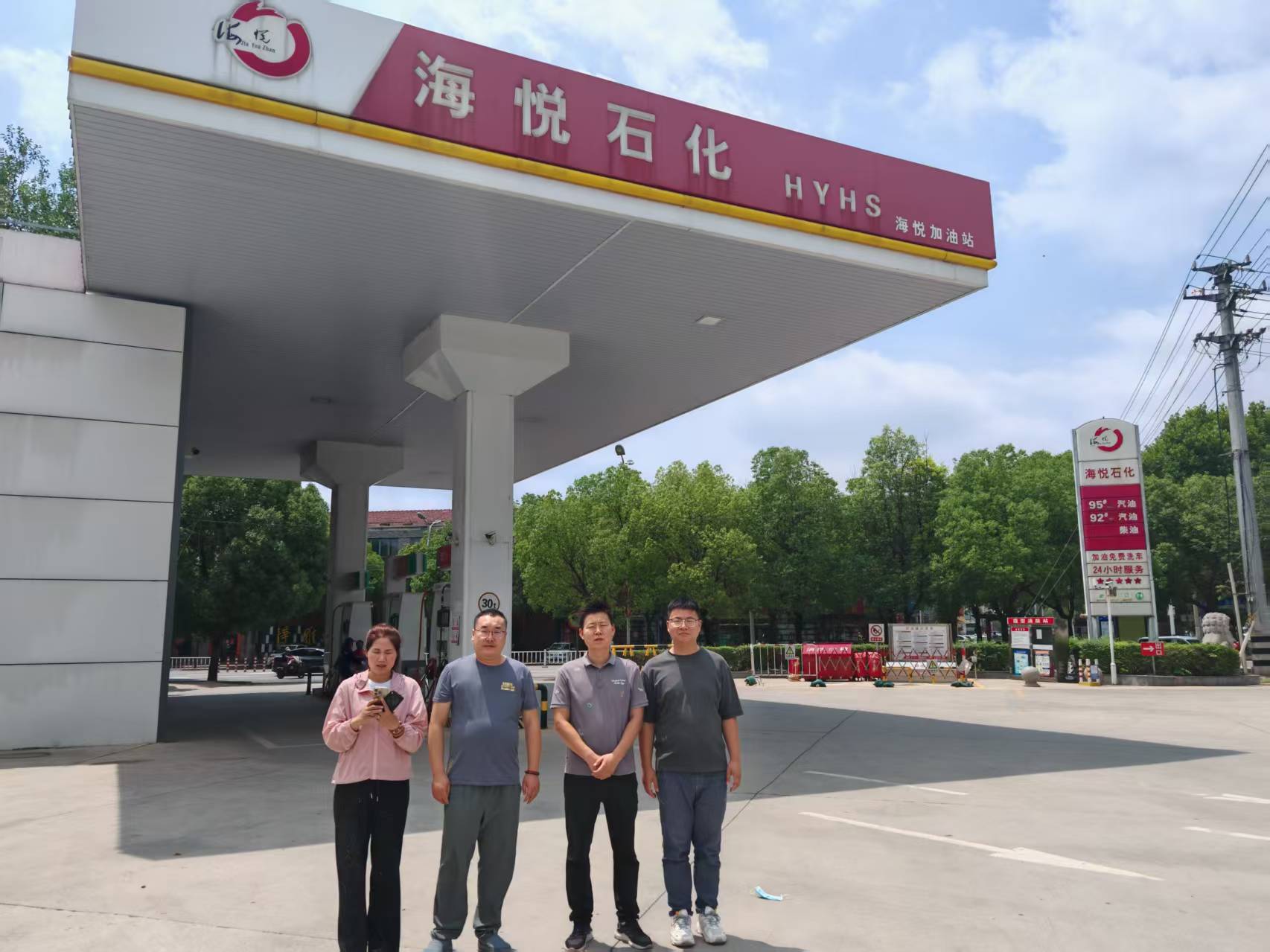 徐州市贾汪区海悦加油站成立于2009年10月21日,统一社会信用代码:91320305695530402E,注册地址为徐州市贾汪区206国道东侧团结路北侧,经营范围包括:汽油,柴油零售;预包装食品零售;烟零售。(依法须经批准经营范围的项目,经相关部门批准后方可开展经营活动)。该站主要负责人为苏敏,苏益镇为专职安全员。 徐州市贾汪区海悦加油站位于贾汪区泓福路北侧,占地面积约1053㎡,罩棚投影面积约200㎡,20m³汽油罐2只、20m³柴油罐2只,加油机3台(均为一机四枪),加油枪计12支,总储油量80m³,折算储油量60m³,为三级加油站。该加油站油罐为SF双层防渗油罐,加油管道为双层防渗管道,同时设置了双层罐、双层管道渗漏在线监测系统。汽油配备卸油与加油油气回收系统;汽油、柴油罐配备了液位监测系统。站区配备了室外高液位声光报警器。 |