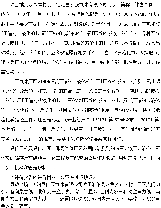 泗阳县佛鹰气体有限公司安全现状评价 |