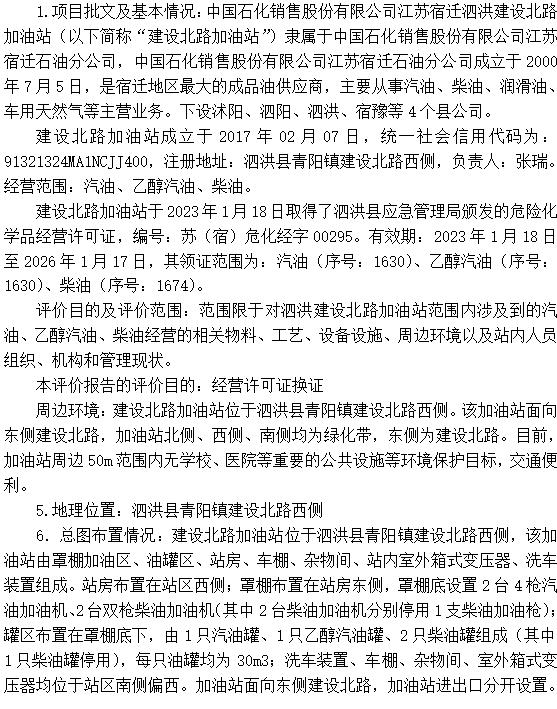 中国石化销售股份有限公司江苏宿迁泗洪建设北路加油站安全现状评价 |